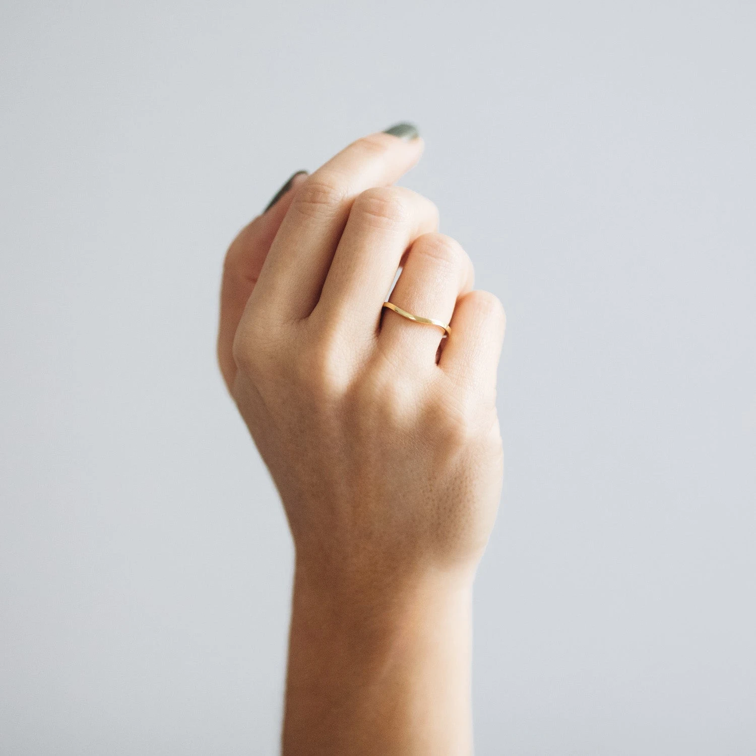 This simple but effective wedding band is gently curved to embrace the contour of your engagement ring. Whether unadorned or carefully micro-set with tiny conflict-free diamonds – you decide.