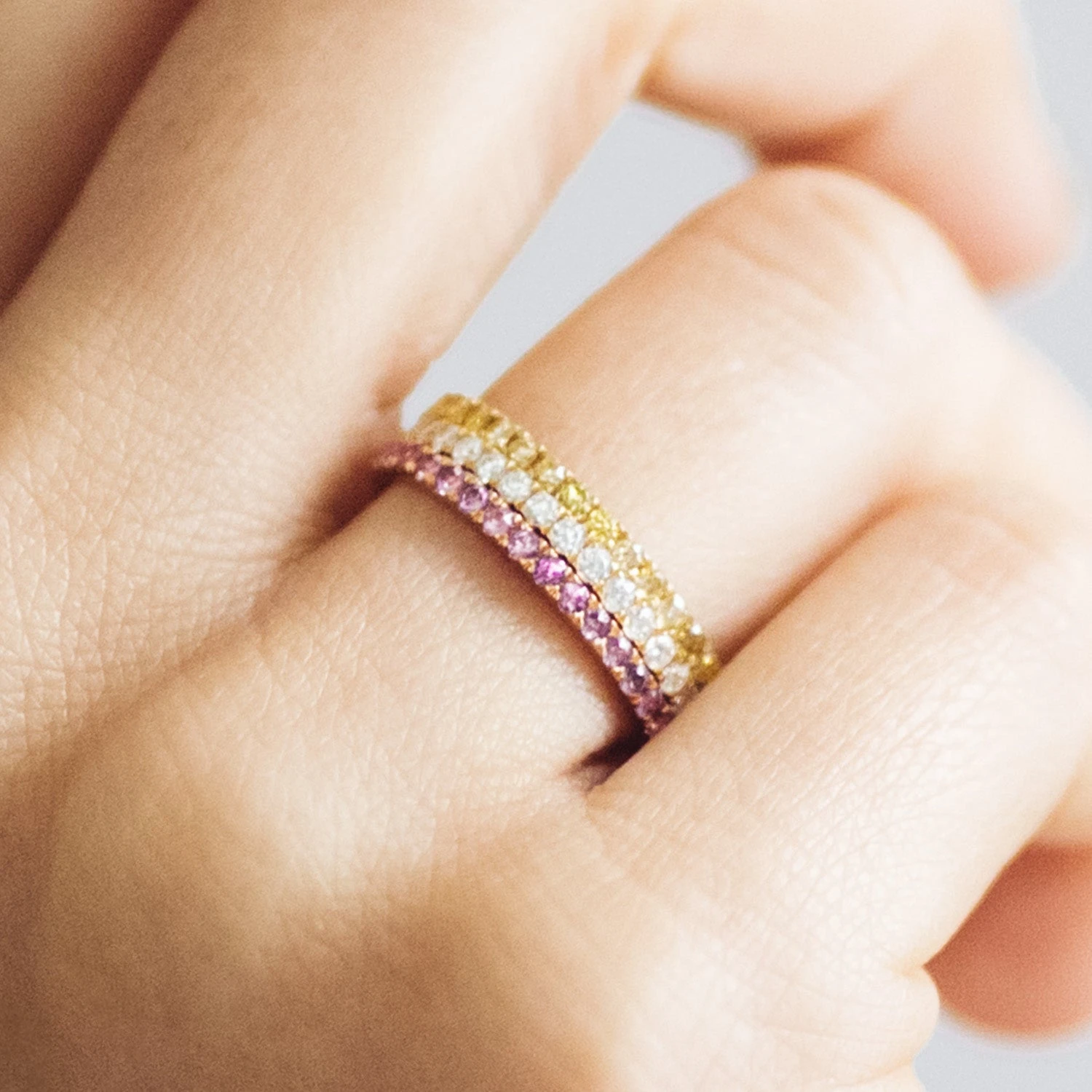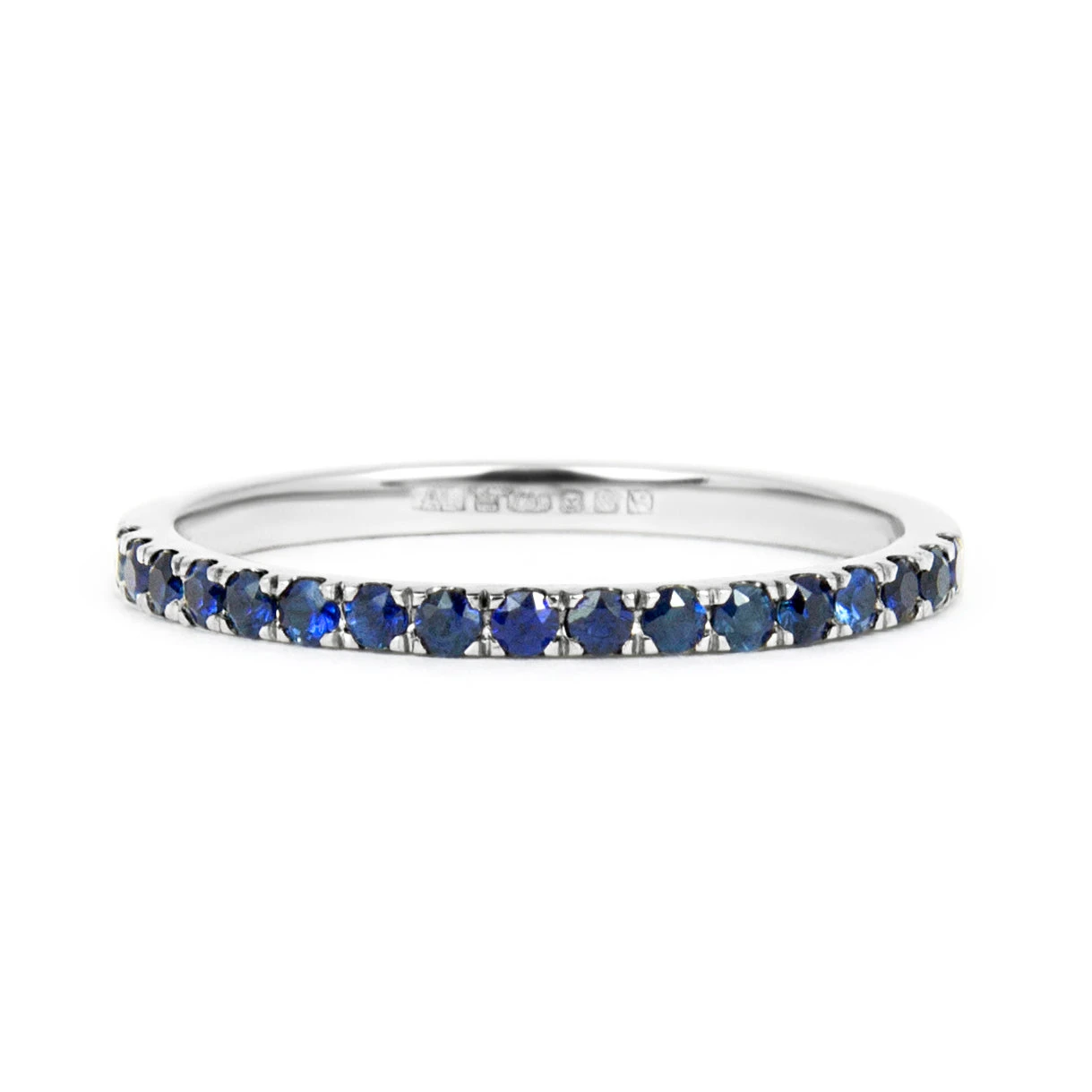 The band is a delicate 1.6mm and will sit perfectly flush to your engagement ring or stack. The 0.25ct – 1.56ct carat of traceable and fair-traded blue sapphires are set half way or all the way around the band.