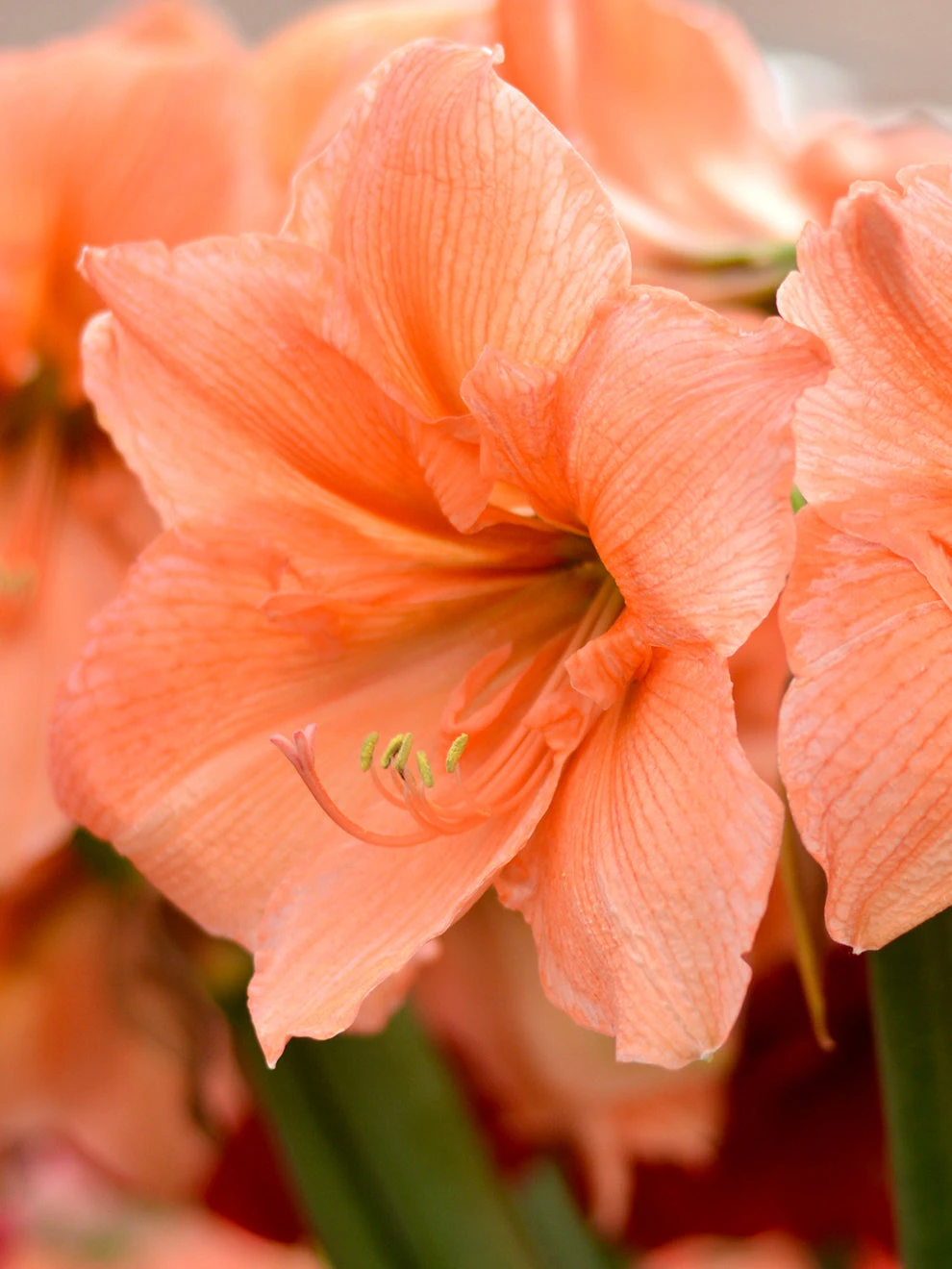 Jumbo Amaryllis Rilona is a very striking and unusual looking amaryllis, featuring large apricot salmon blooms. This exceptional variety is actually very popular as a cut flower, due to its ravishing colour and long-lasting performance.Â