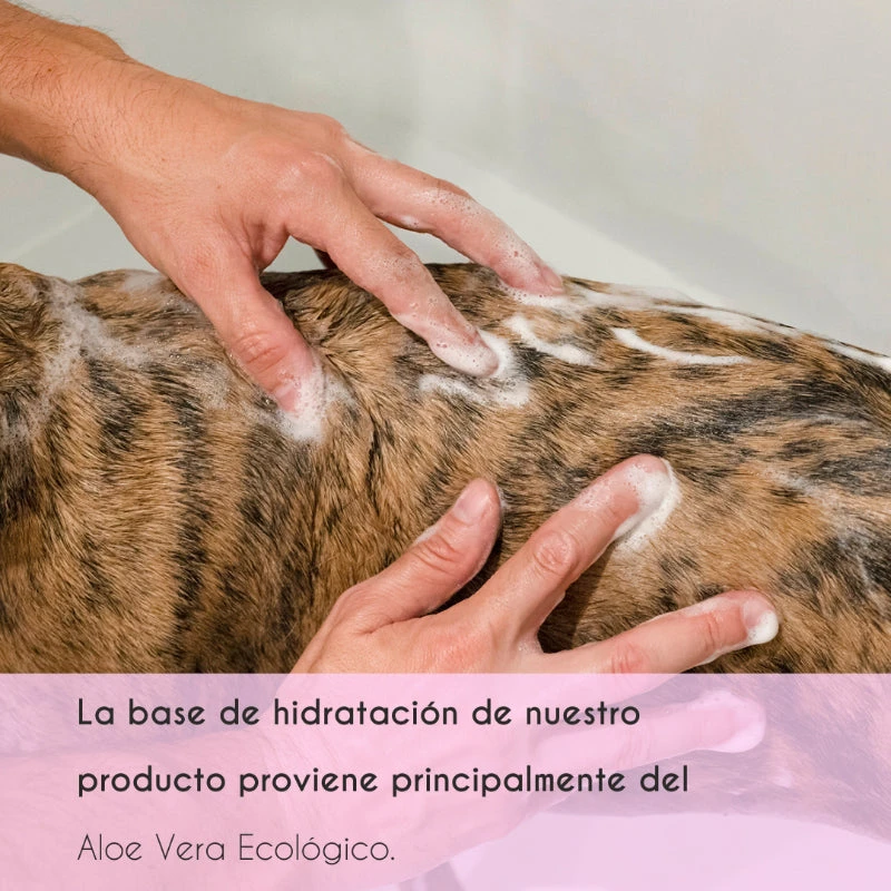 Un producto sostenible formulado para lavar en profundidad e hidratar la piel y el pelo de tu mascota.