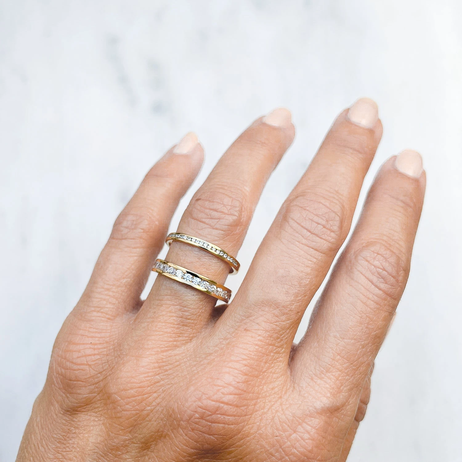 * Features a flare of traceable Canadian diamonds across half of the band (half eternity) or full band (full eternity)